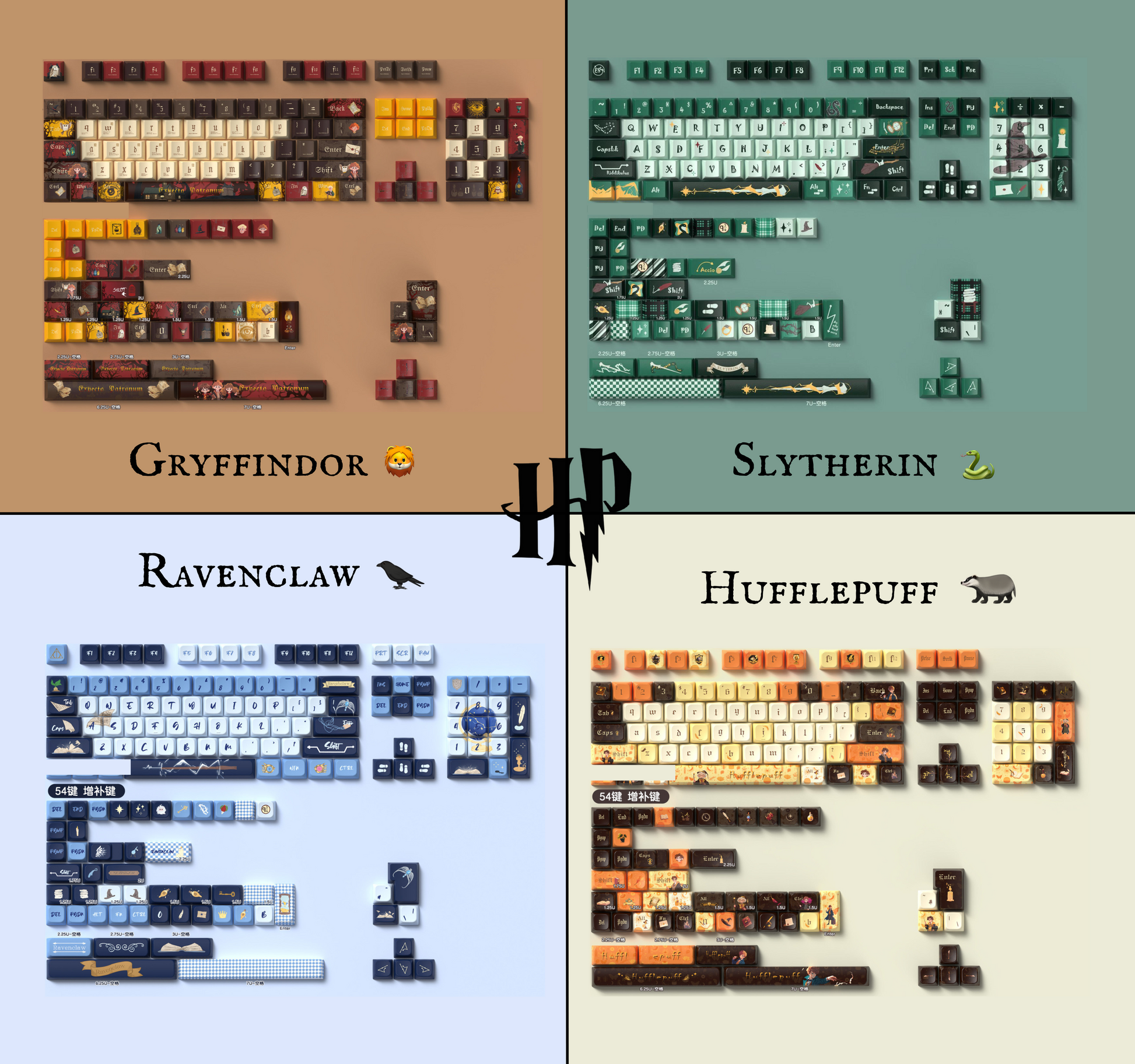 Bring your keyboard to life with handcrafted keycaps inspired by the four Hogwarts houses. Bold colors, clean designs, and the perfect magical touch. ✨⚡